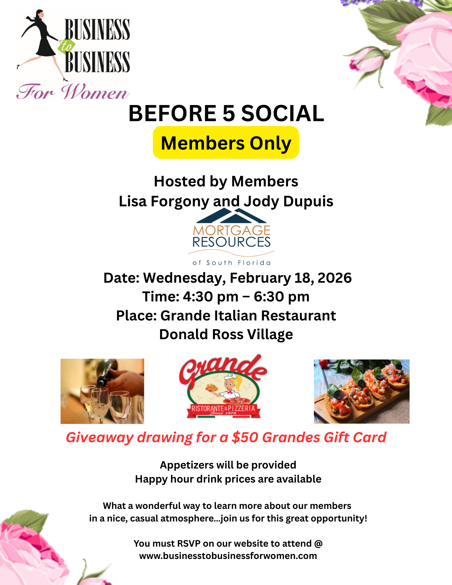 Before 5 Socials are a fun, informal way to network and learn more about your fellow members in a casual atmosphere.